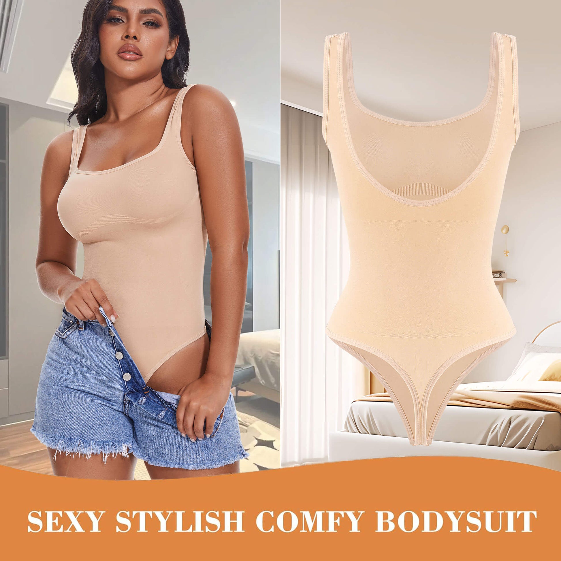 ANYFIT WEAR Backless Square Neck Bodysuit Shapewear for Women Full Body Shaper Tummy Control Butt Lifting Seamless Slimming Tank Top