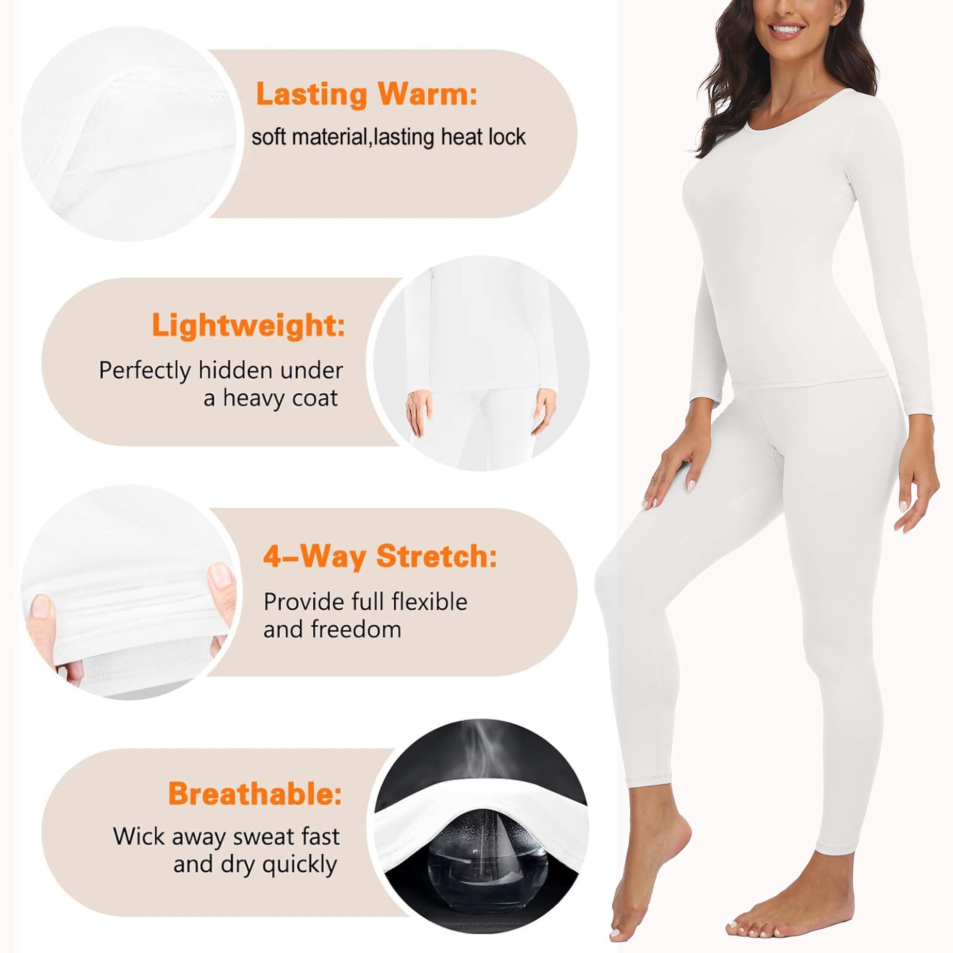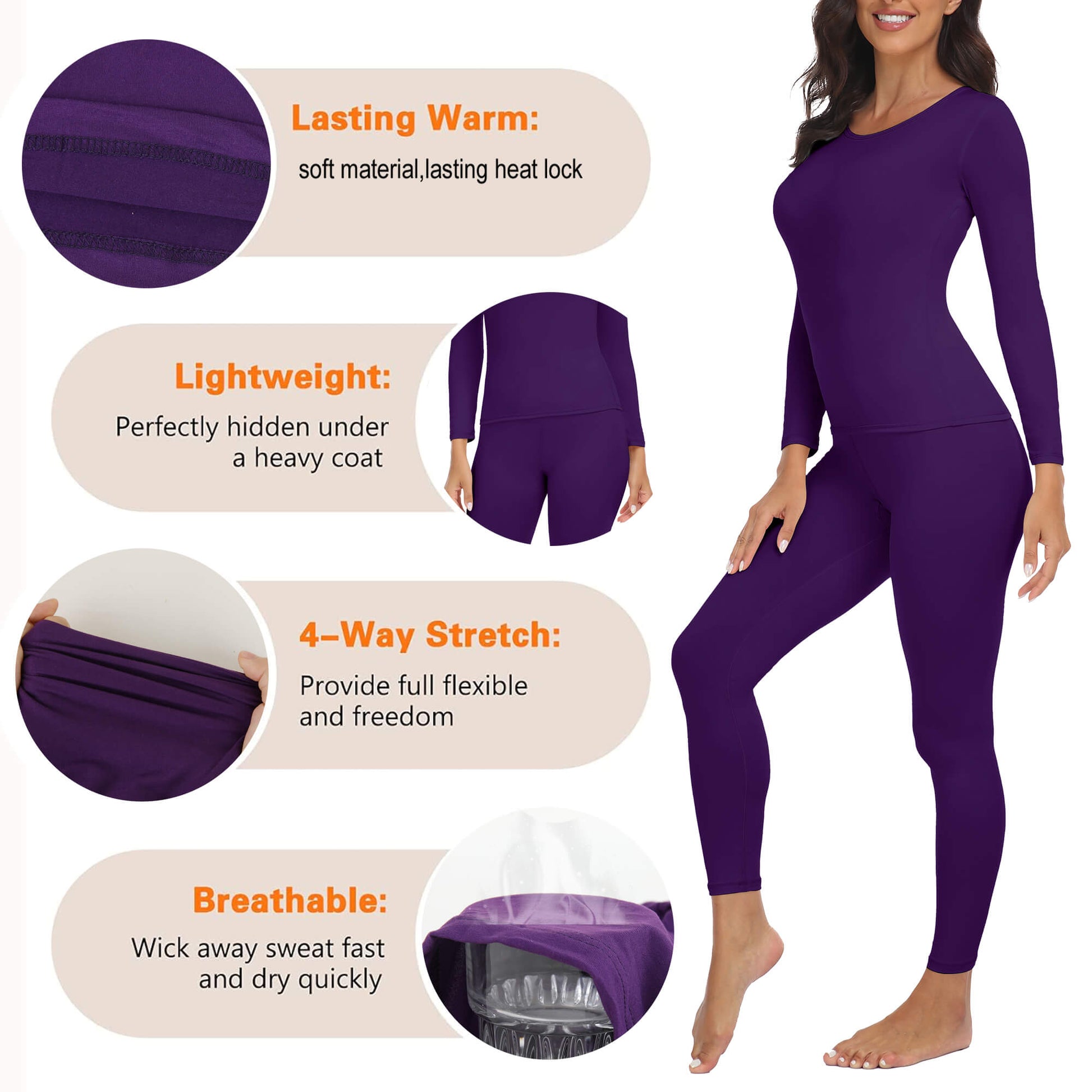 - Wide Usage -- The thermal underwear base layer is perfect for outdoor activity like running, skiing, climbing, hunting, camping, cycling or you can use it indoors like office, home, sleeping, yoga, fitness.