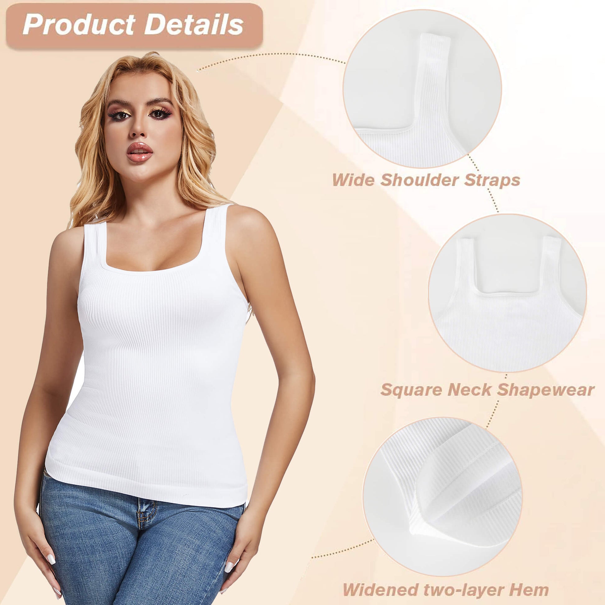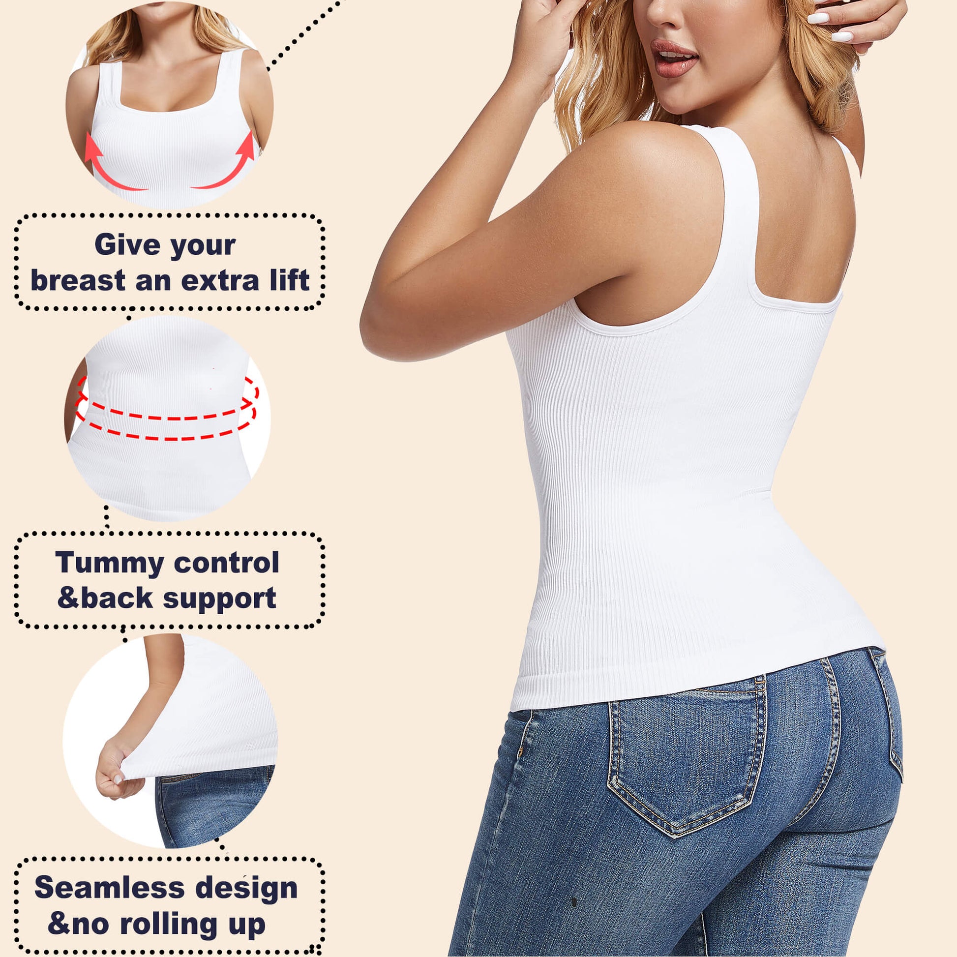 - 【SEAMLESS & HIGH-ELASTIC】85% Nylon + 15% Spandex, skin-friendly, breathable, and soft. Unique seamless fabric, more elastic, can better fit the waist and abdomen, and achieve a shaping effect. The women's shapewear tank tops are very flattering to wear.