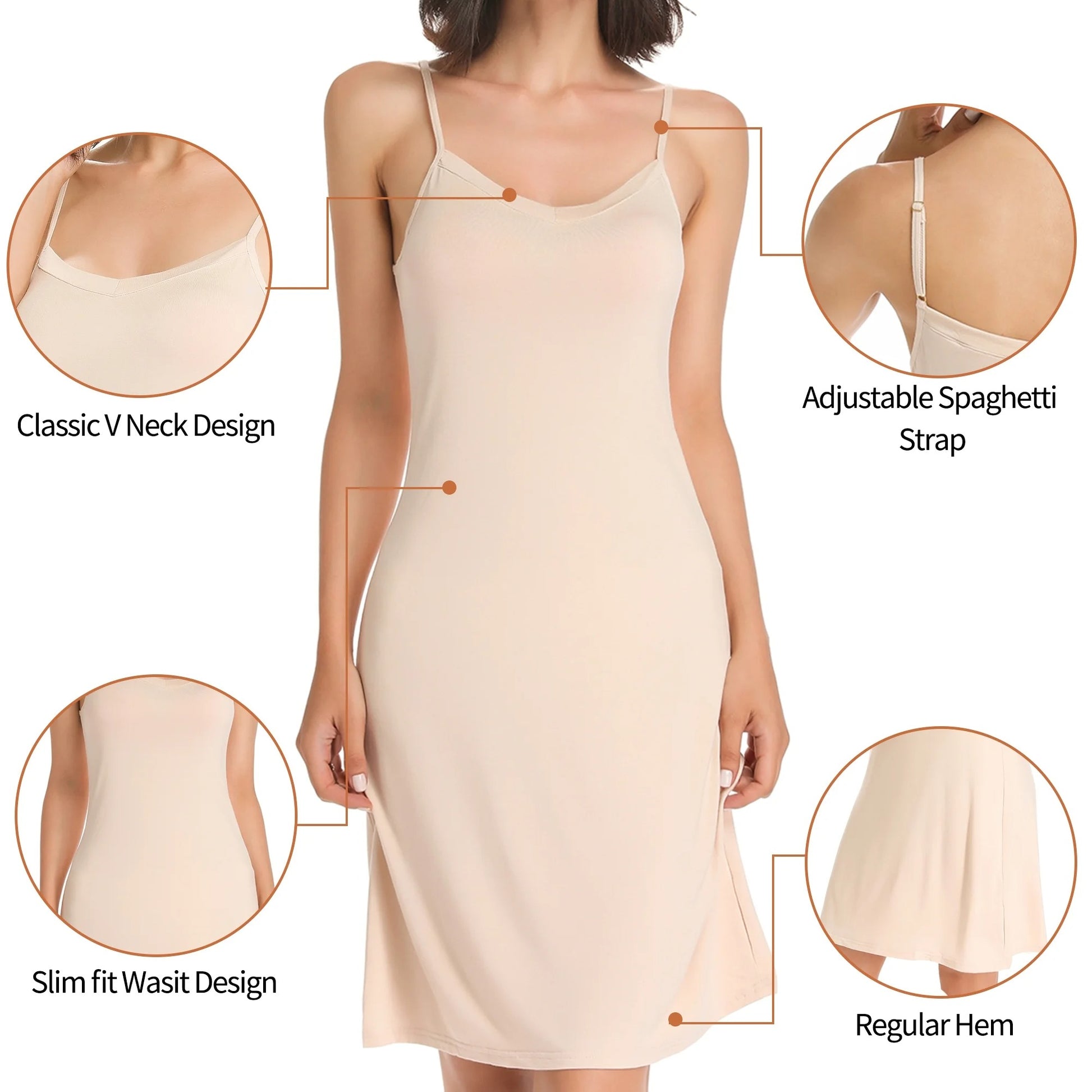 - Smooth Fabric: The slip dress is made of 95% modal , 5% spandex. The fabric is stretchy, breathable and super soft with great touch,it would be a good choice for sleepwear or you can think of the nude slip under dress for some formal events.