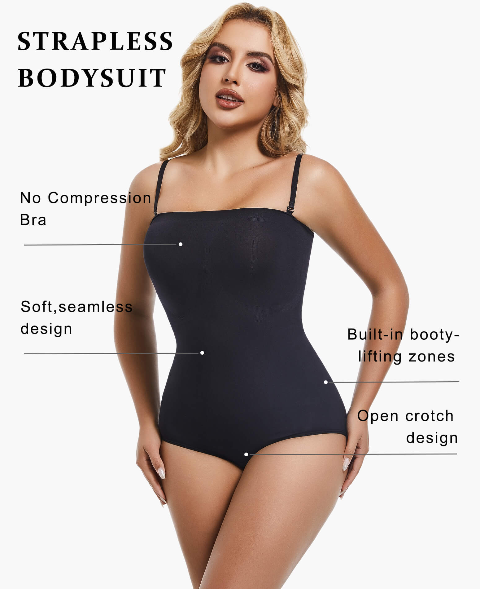 - Removable and Convertible Straps: Strapless shapewear with removable and five-way convertible straps for any outfit—whether you need traditional, criss-cross, halter, narrow-back, or racerback straps.