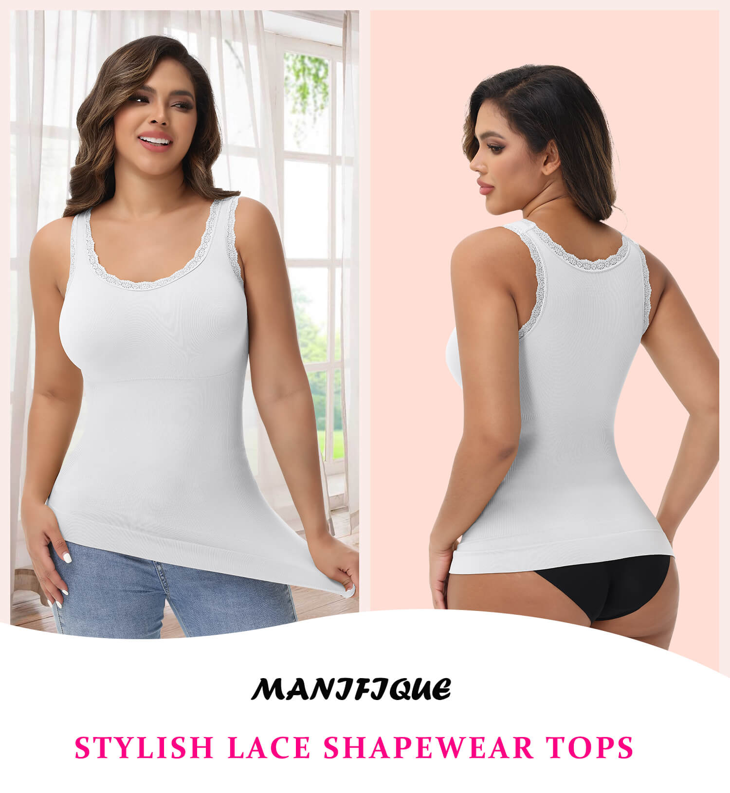 MANIFIQUE 2 Packs Women Tummy Control Shapewear Lace Tank Tops Seamless Compression Tops Slimming Body Shaper Camisole