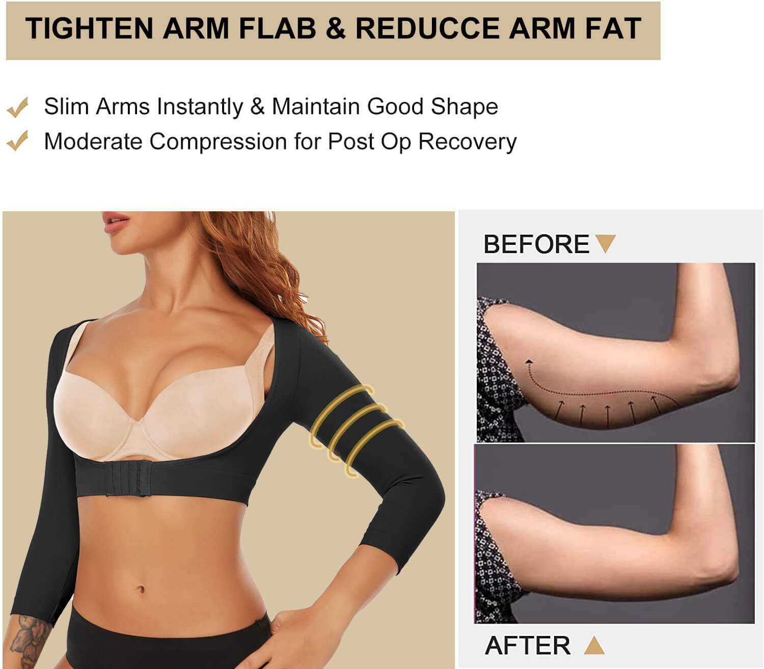 SLIM YOUR ARMS & BACK-- The upper arm shaper gives strong compression on your arms and back, smooths and tights bumps and bulges, reduce arm and back flab,hide your back rolls, give your a slimmer figure.