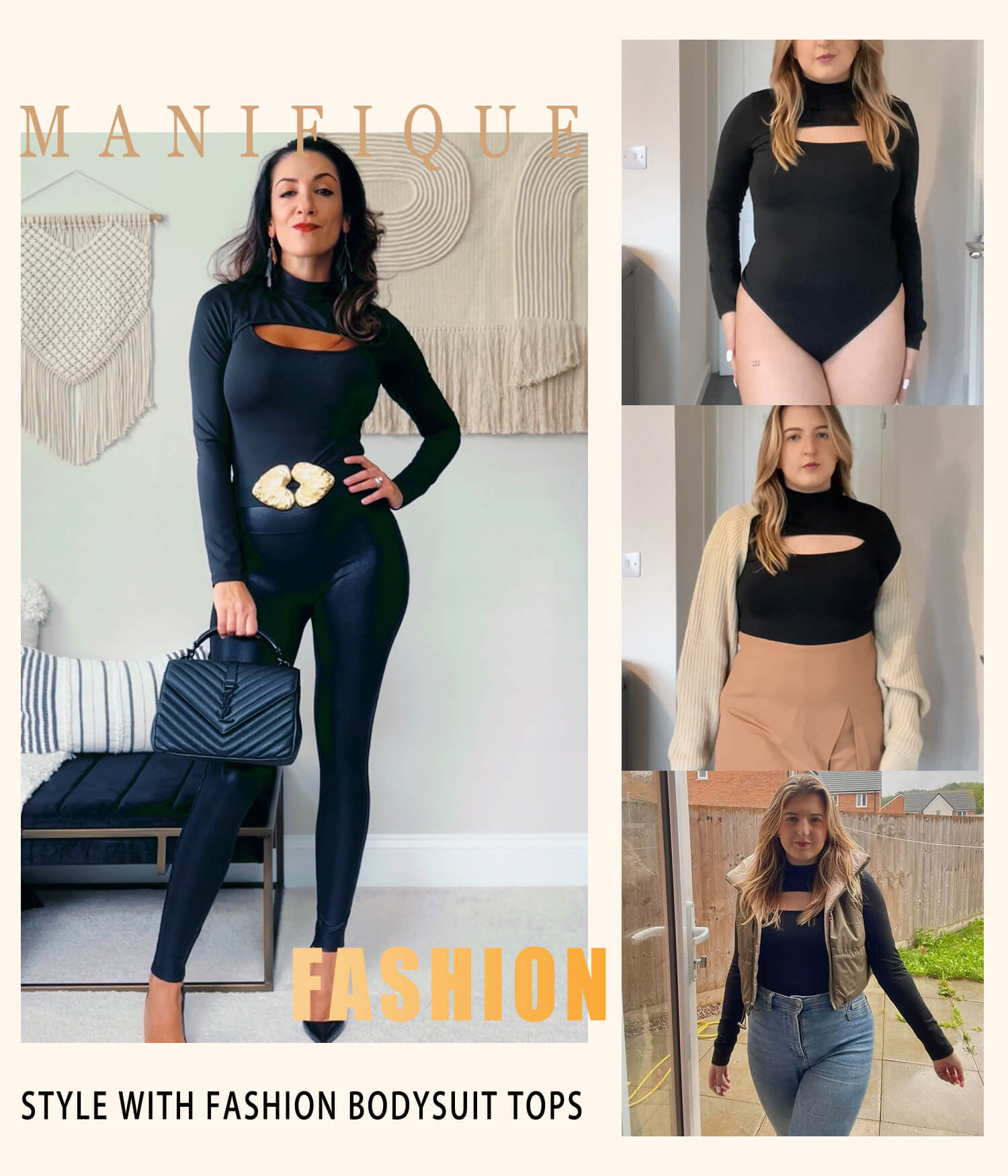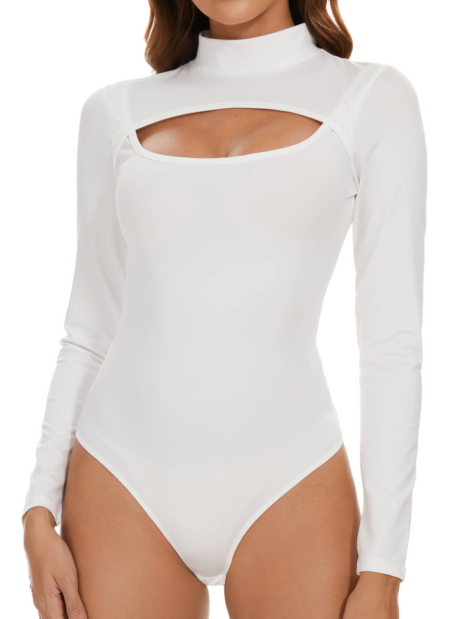 - This mock neck cutout front bodysuit for women is made of soft, breathable, stretchy, high-quality fabric