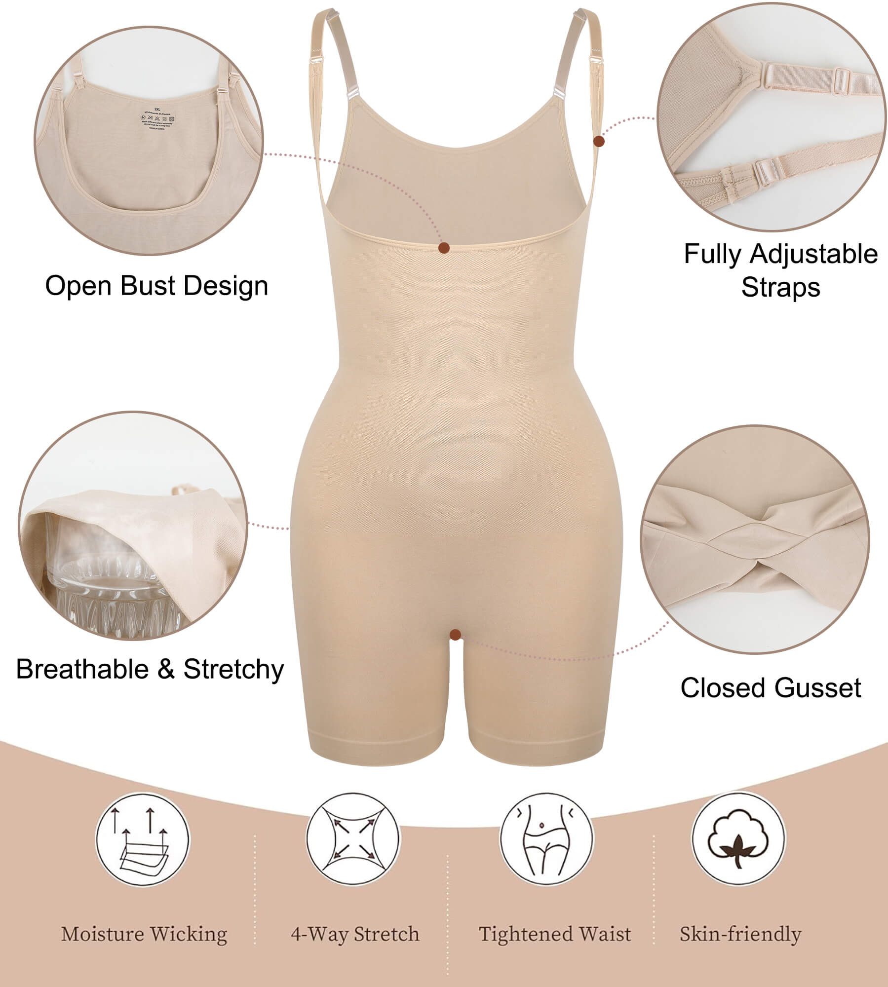 - U Shape Open Bust: Allows you to pair the bodysuit with your preferred bra, enhancing comfort and versatility.