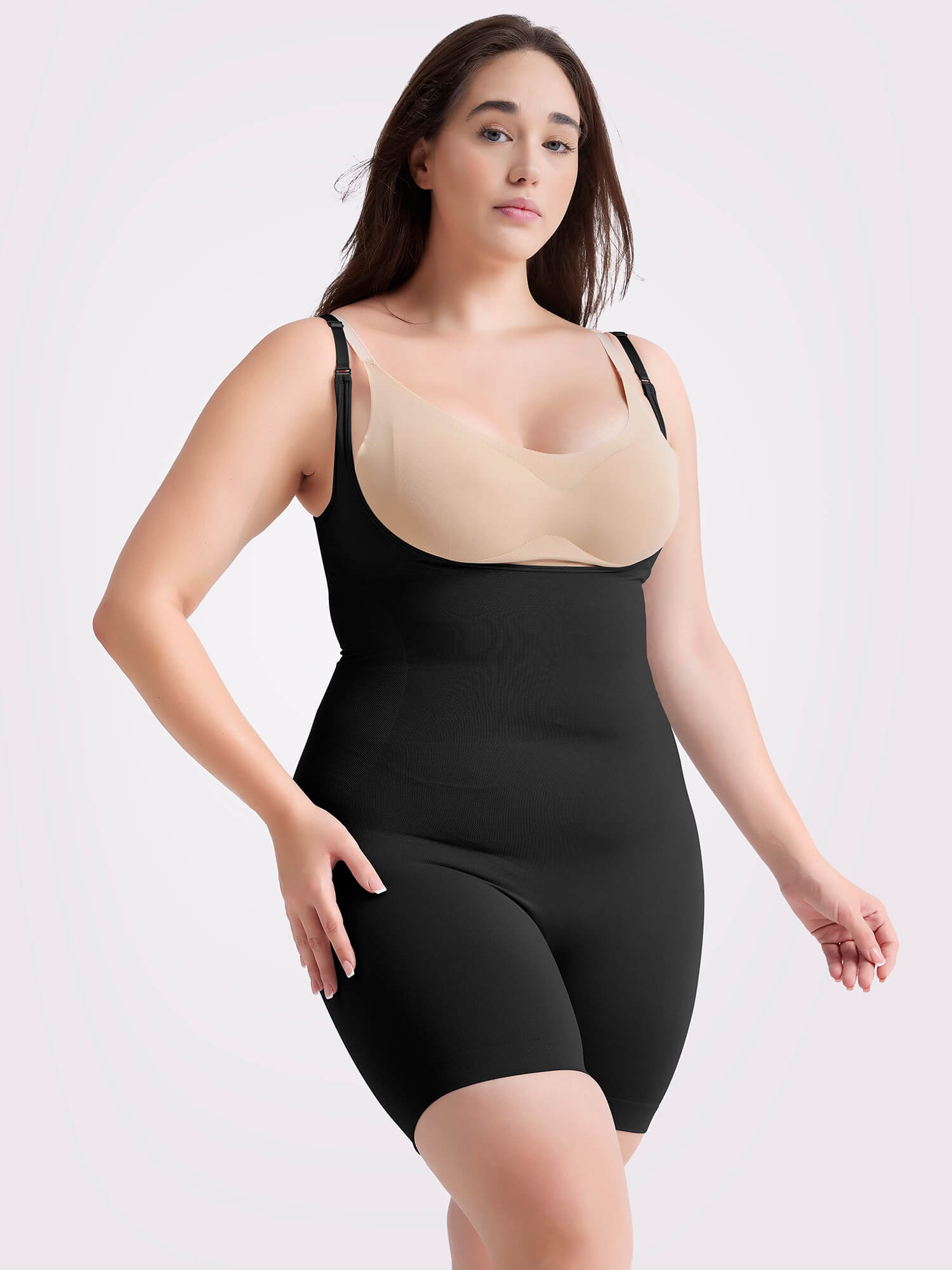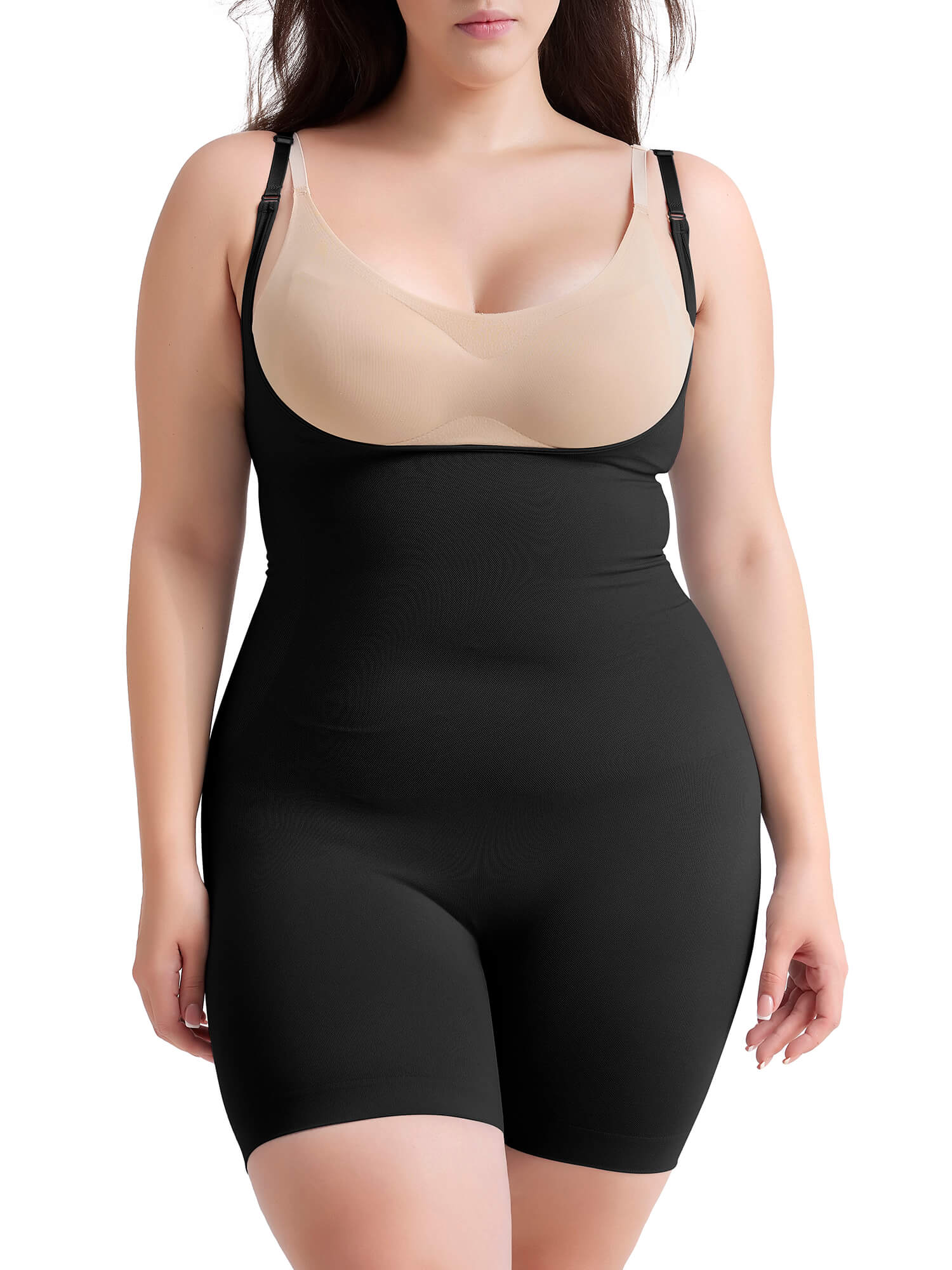 MANIFIQUE Plus Size Open-Bust Shapewear Tummy Control Mid-Thigh Bodysuit, High-Waist Thigh Slimmer, Shapewear for Women