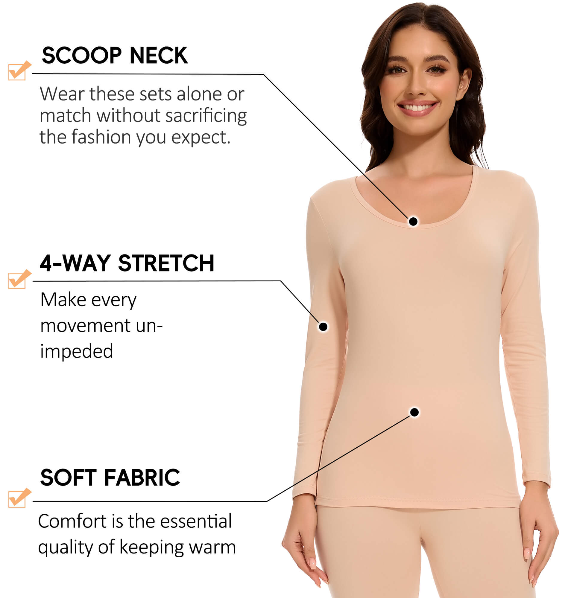 MANIFIQUE Thermal Underwear Set for Women Ultra Thin Long Johns Scoop Neck Base Layer Top & Bottom Set