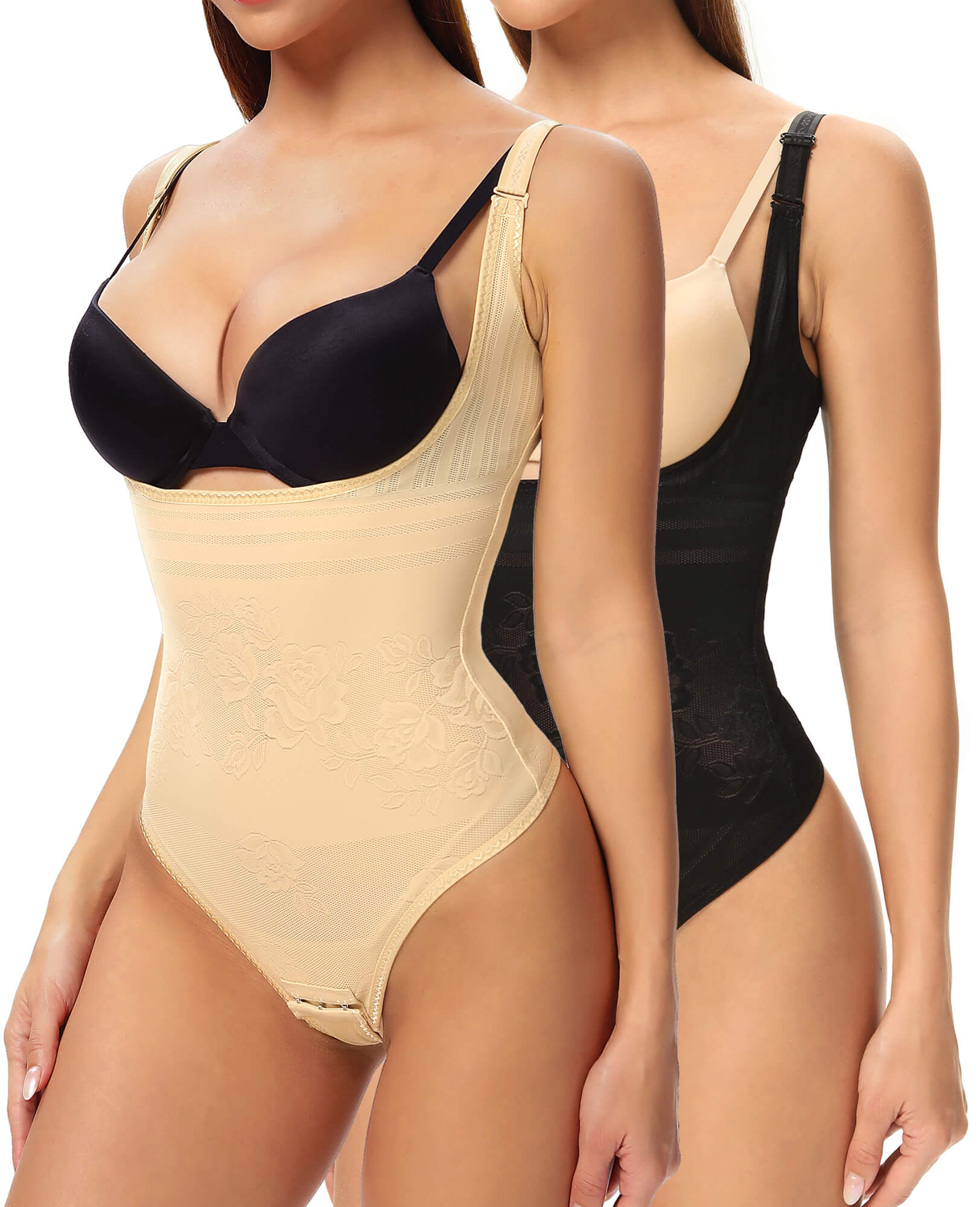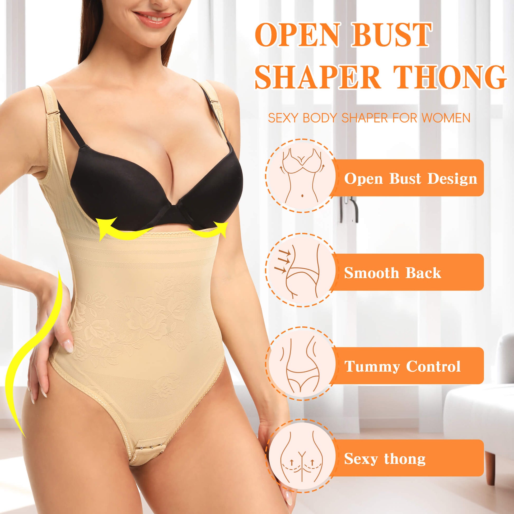 MANIFIQUE Thong Shapewear Bodysuit for Women Tummy Control Open Bust Body Shaper Slimmer Shaping Thong