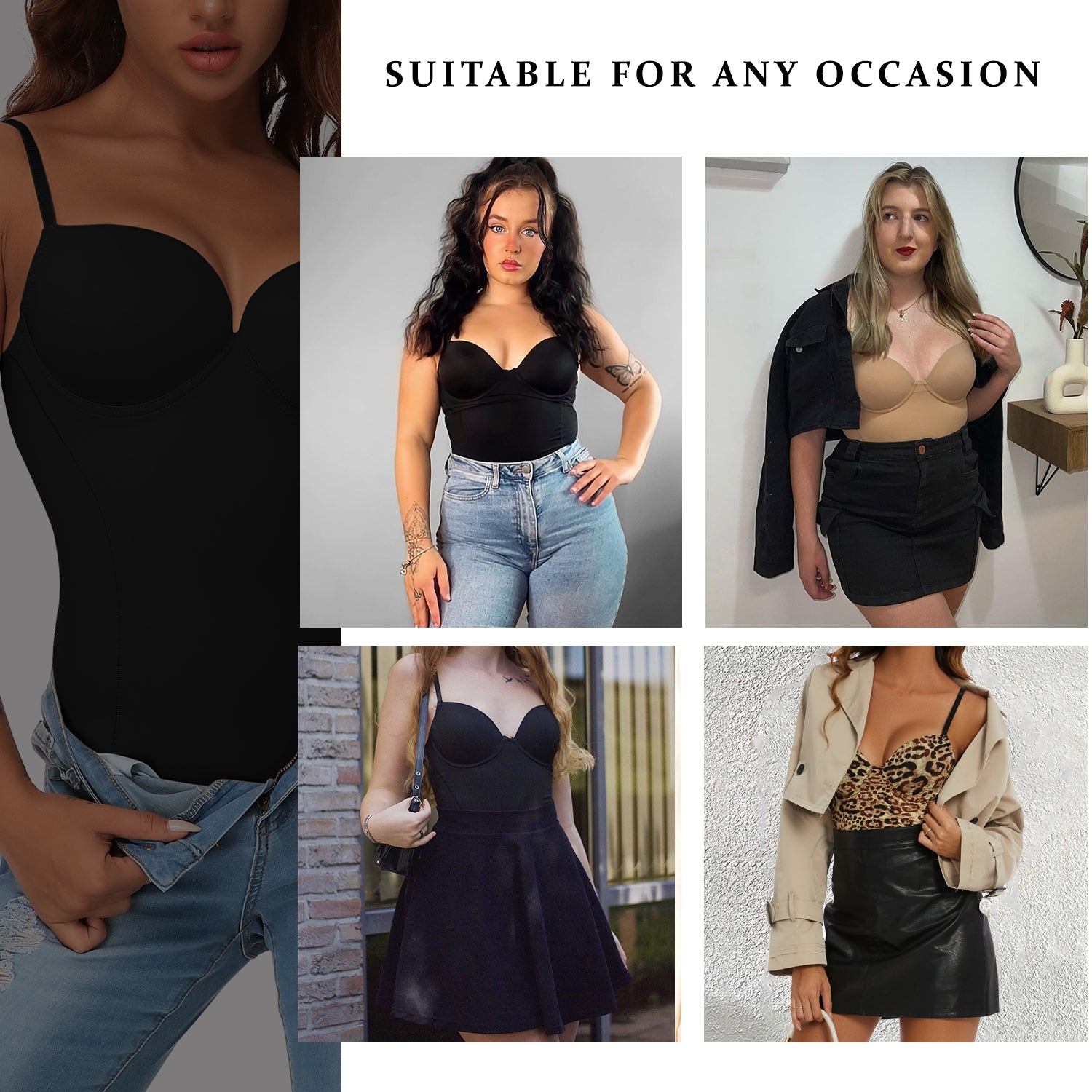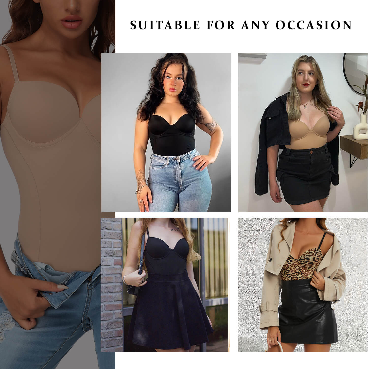 - Built-in underwire bra in your cup size,full-coverage support makes this a true all-in-one bodysuit with adjustable straps for a customized fit.